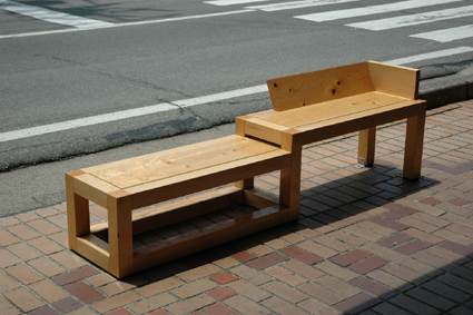 前年度の「飛騨・高山学生家具デザイン大賞」入賞作品。 入賞作品は製品化された上、町なかに設置される。 違い棚をイメージしたベンチらしいが、別にたいした作品 ではないと思う・・・。 |