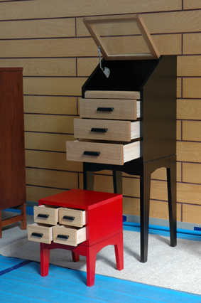 | コレクションボックス“グラナダ” アルハンブラ宮殿へのオマージュとしての作品。 赤と黒という奇抜な色彩と超現実的コンセプトが、 学内で賛否両論巻き起こした。詳しくは作品集 G-PROJECT(近日公開予定)で。 |