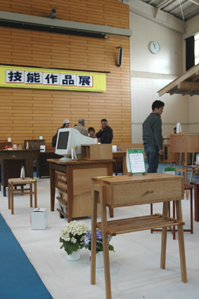技能作品展 学校で製作した作品はすべて売却され、県の収益となる。 自分の作品を自分で買うことは許可されていないので、 どうしても欲しい人は、近親者やサクラを使って手に 入れることになる。 いずれにしてもこの作品展における来場者の反応が、 自己の作品に対する直接的な評価となる。 |